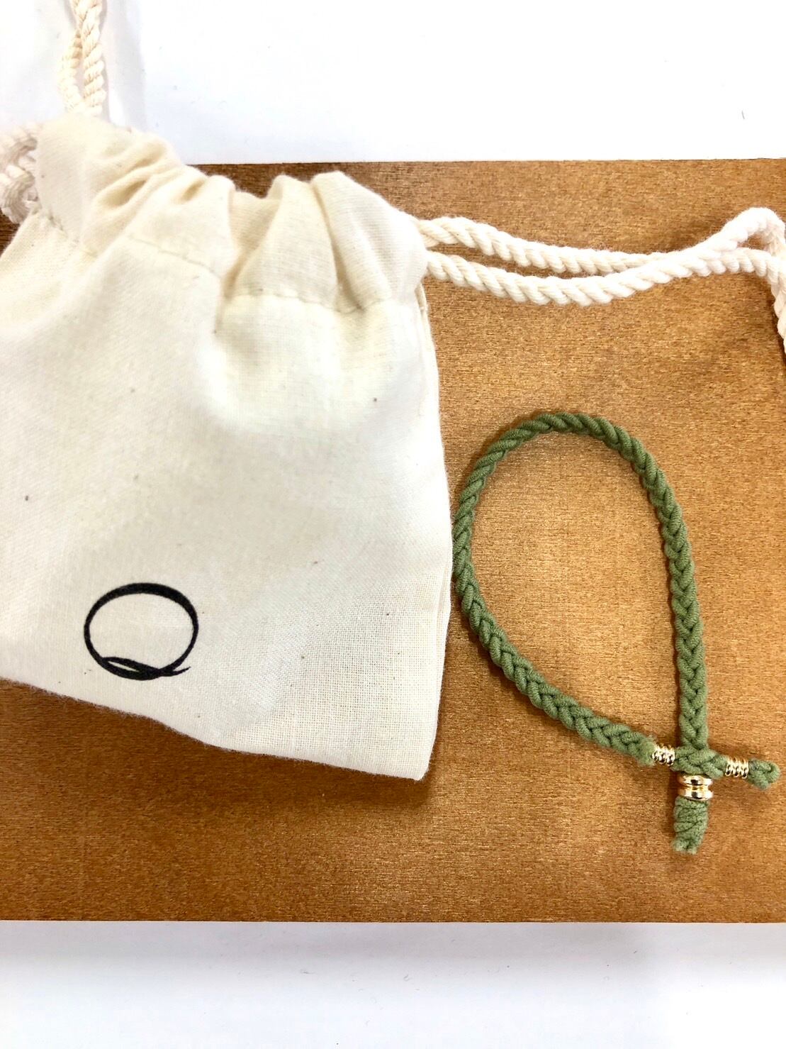オリーブ色の三つ編みは、優しいカラーでどんなコーディネートにも合わせやすく、存在感もアップします。また、Qシングルの金具は耐久性に優れております。