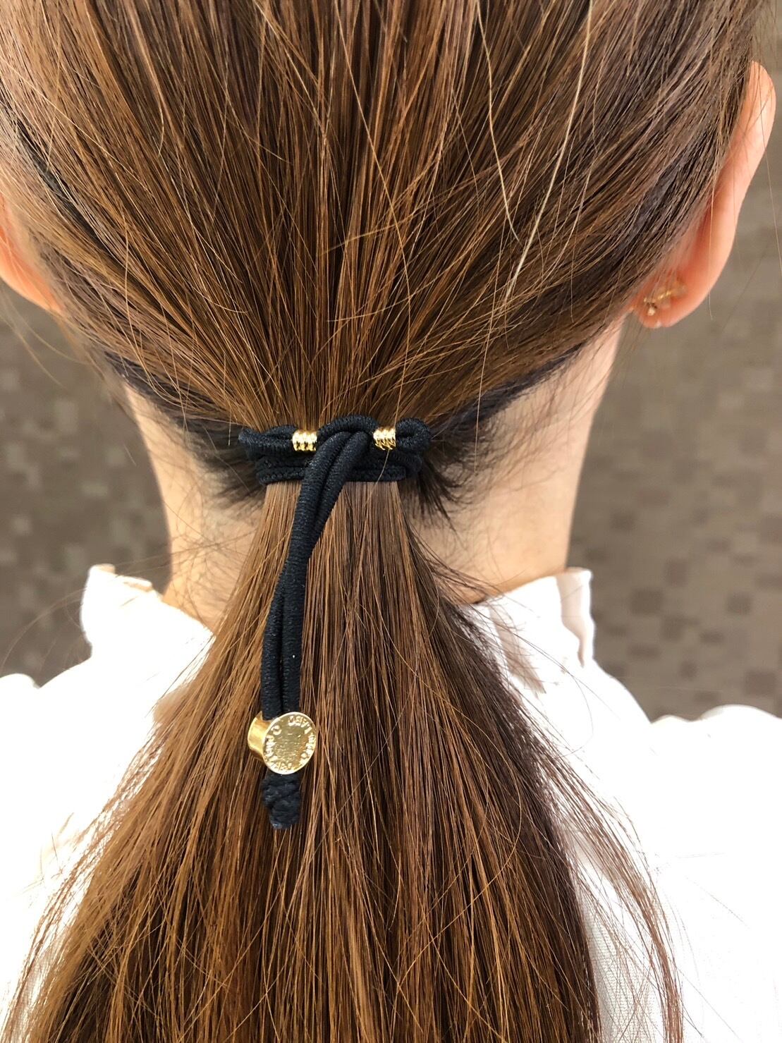 Qダブル ブラック×ゴールドは、高品質な2本のゴムとゴールドのオリジナルロゴ金具が特徴的なヘアアクセサリーです。美しいブラックで統一されたデザインは、どんなスタイルにも合わせやすく、あなたの雰囲気を格上げしてくれます。