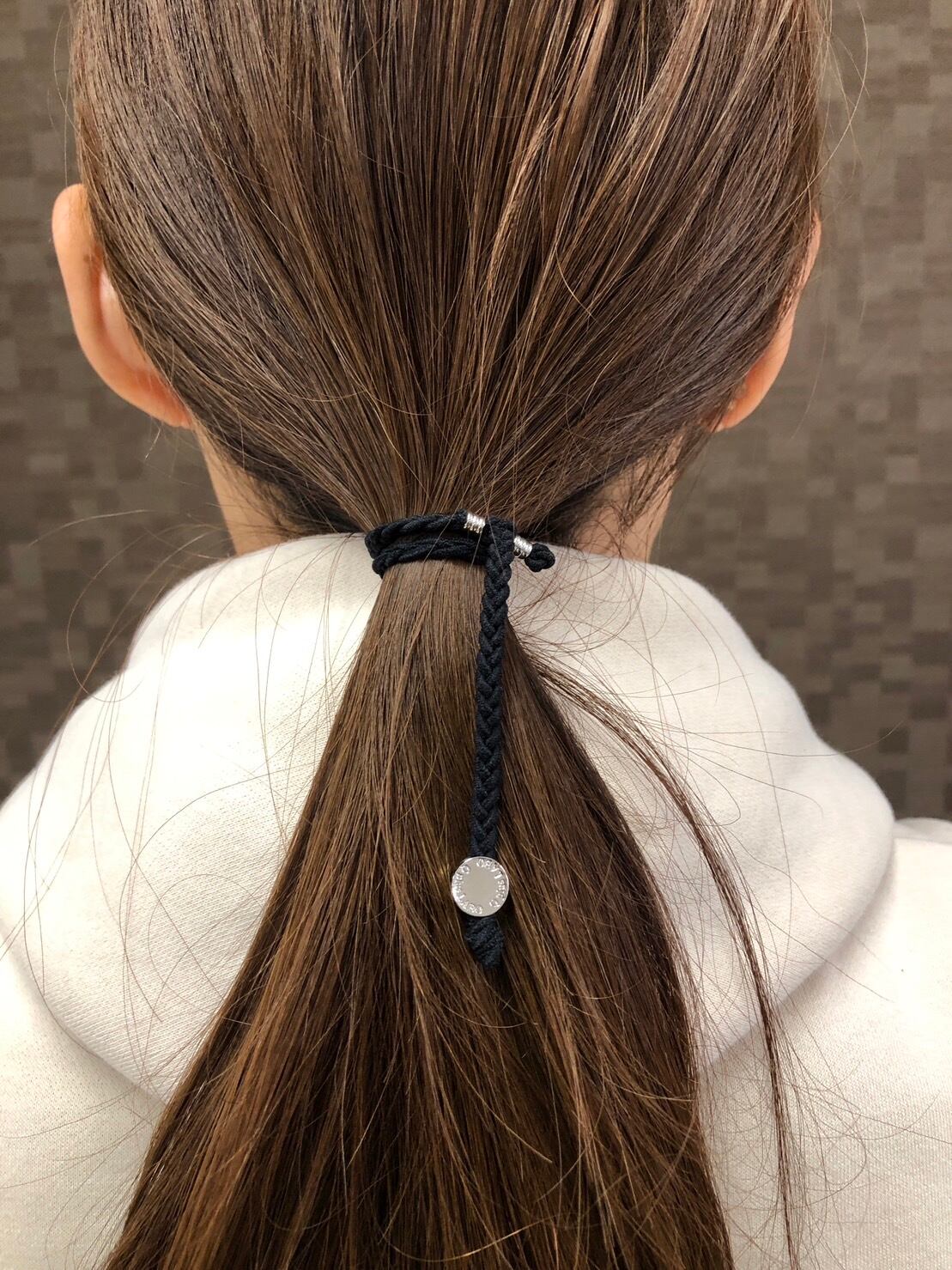 三つ編みの1本ゴムと美しくかがやくロジウムカラーのオリジナル金具が、いつでもどこでもエレガントなスタイルをつくり出します。