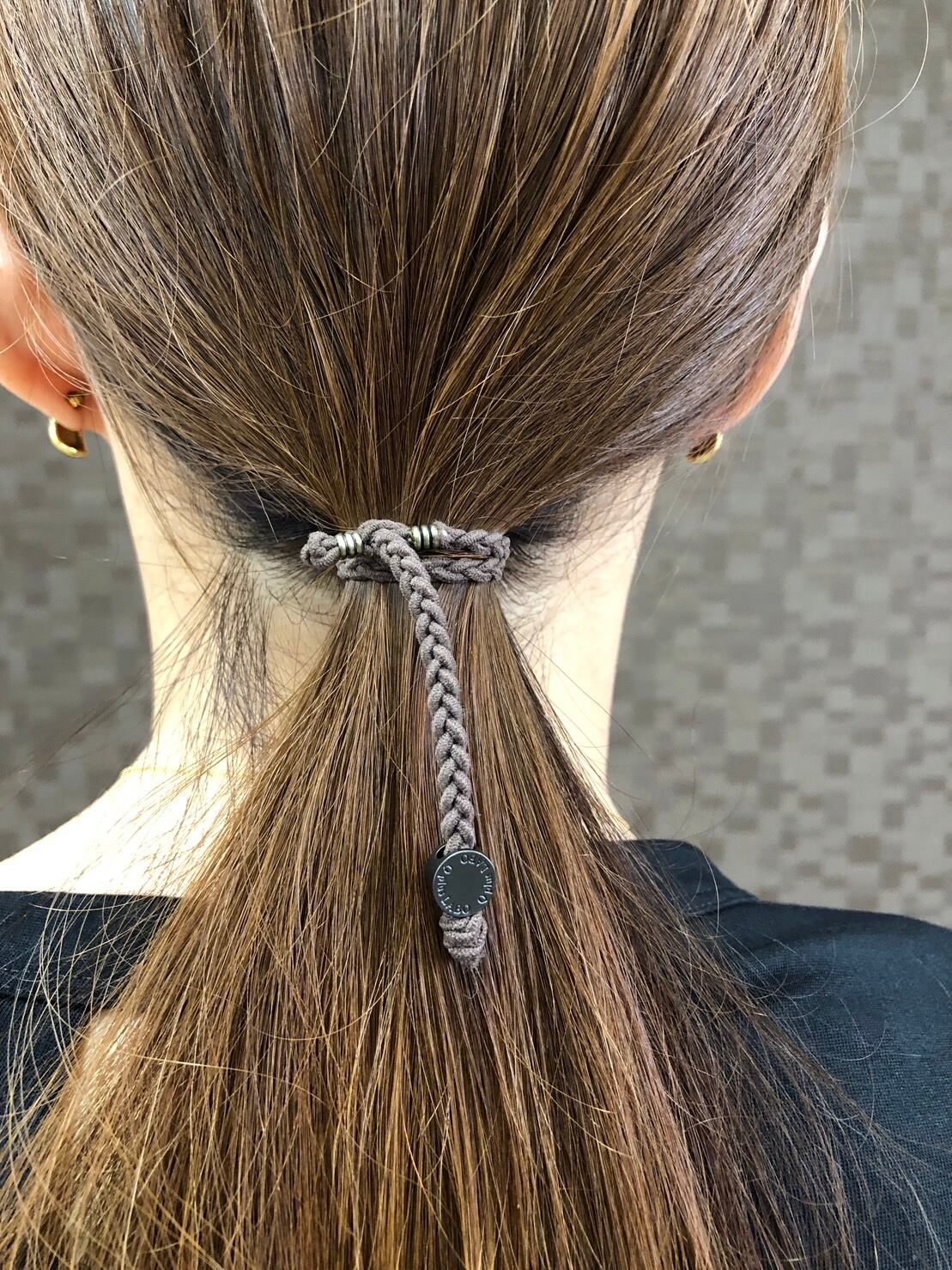 三つ編みQシングル オリジナルロゴ ブラウン×黒マットは、髪型だけでなくファッションに合わせたアクセサリーとしても使えます。髪型やファッションアイテムに自信がもてる一歩に、ぜひお使いください。